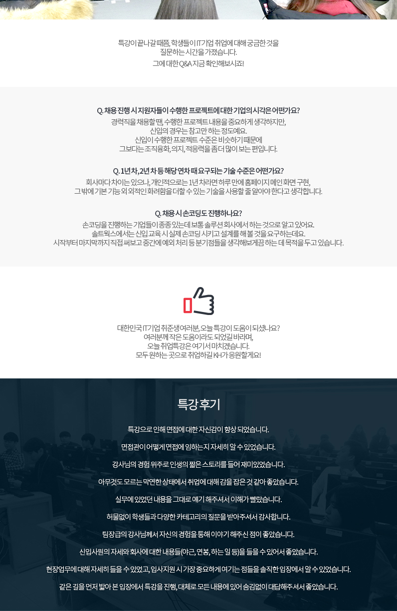 KH임직원은 수강생 한 분 한 분의 성공적인 취업을 위해 최선을 다하겠습니다.